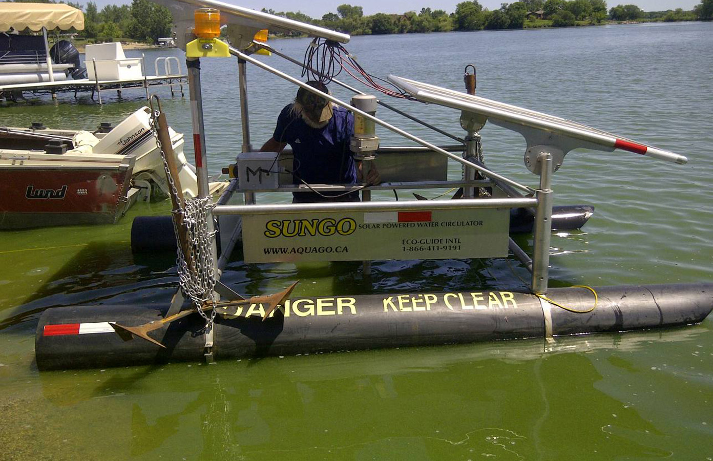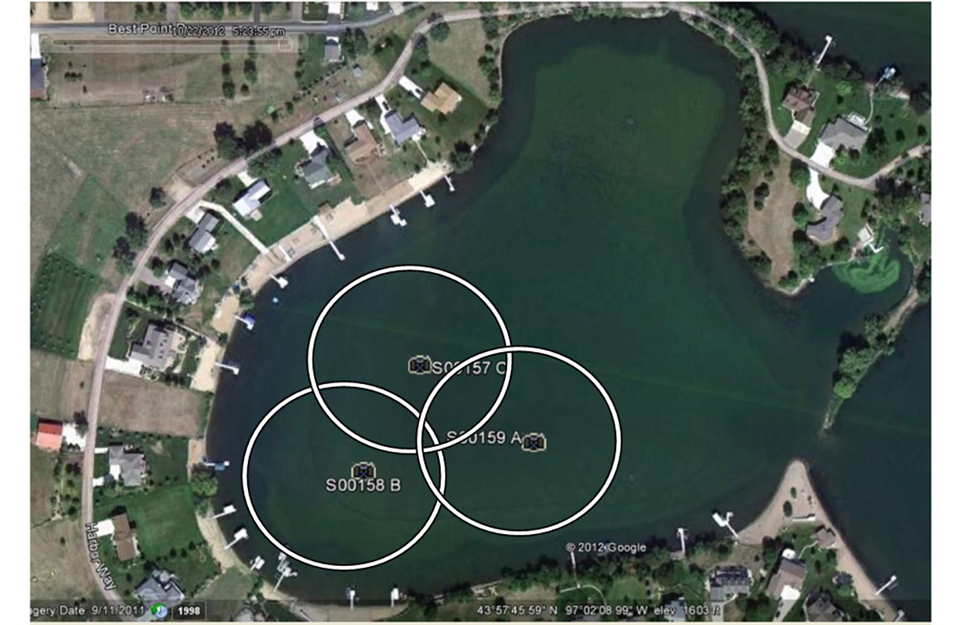 位于美國南達科他州Harbor Bay的Madison湖長期接收周圍農業面源污染、地表徑流和市政污水的污染物入湖,湖底堆積的底泥常年向水中釋放污染物,導致湖體水質富營養化嚴重 。2012年6月初由于干旱湖水水面下降,藍藻大規模爆發。根據該項目現場踏勘及底泥調查結果,設計將三臺奧科?太陽能循環復氧設備以三角形點位布設。