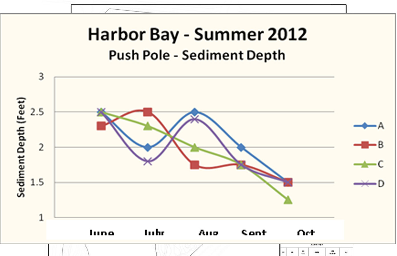 使用奧科?太陽能循環復氧設備4個月后,對Madison湖的底泥進行測量。測量結果表明,在奧科?太陽能循環復氧設備使用后,底泥深度明顯變淺。2012年6月-10月之間,測量點底泥消減量平均為30厘米。