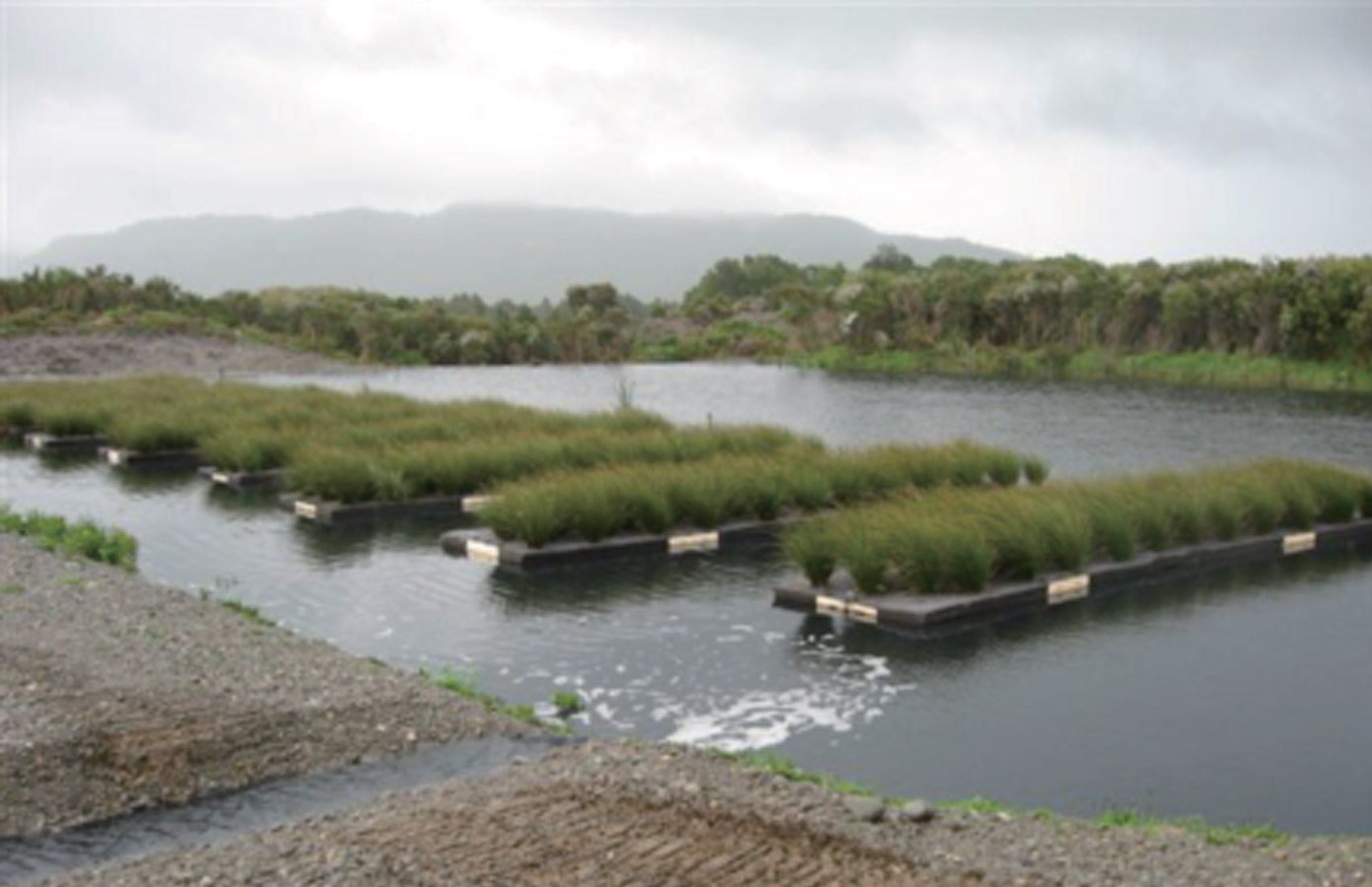 新西蘭南島Grey mouth小鎮(zhèn)垃圾填埋場(chǎng)的垃圾滲濾液與周邊雨水徑流混合液匯集到污水處理塘中,經(jīng)過百奧源®浮動(dòng)濕地的強(qiáng)化處理。處理后水體的懸浮物、有機(jī)物、總氮的去除率分別提升了89%、46%、40%,水體的色度與濁度均得到明顯改善。